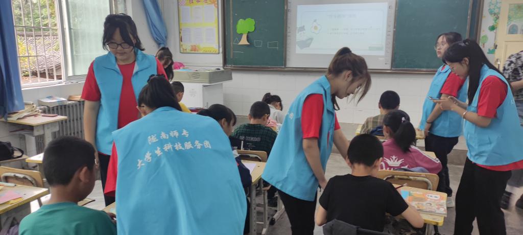 9月15日上午,大学生科技服务团赴甘肃省成县高桥小学进行科普宣讲,为孩子们带来了一堂别开生面的科普公益课程。大学生志愿者采用视频、图片等方式,从孩子们熟悉的神话人物入手,通过师生互动、动画引导、亲身实践等方式,结合各种趣味故事,让孩子们对想象的作用、意义及培养有了全新的认识。在阵阵欢声笑语里,孩子们收获了与在学校课堂上不一样的体验与乐趣。